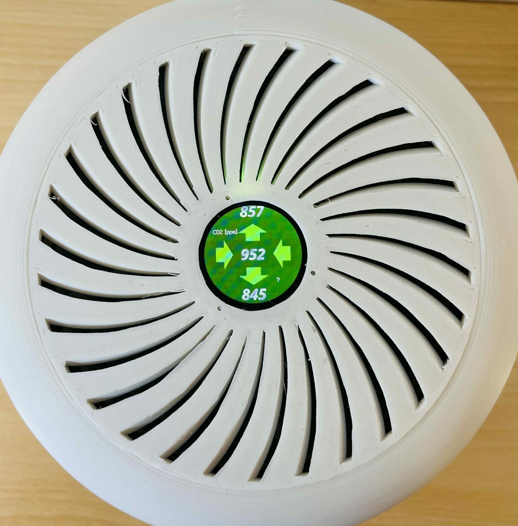 The Diverter releases up to 120 m³/h of clean air upwards while simultaneously directing dirty air downwards to achieve effective separation. The top stage of the system provides an intuitive touch interface that allows you to visualize key performance parameters such as CO2 concentration, CO2 separation rate, volumetric flow, and the quality of the outlet air.